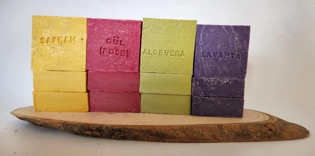 Doğal Üretim Sabunu Karışık (Safran-Gül-Lavanta-Aleovera) 12'li Set Cildi kurutmadan temizler nem vererek pürüzsüz bir bakım sağlar.Saç dökülmesini engellemede Saç beyazlama sürecini yavaşlatmada yardımcıdır.Ürünlerimizi El,Yüz,Saç Ve Beden Temizliğinde Kullanabilirsiniz.Uzun Süre Kullanabilmeniz İçin Islak Zeminde Bırakmayınız.Serin ve kuru yerde muhafaza ediniz.TS 54 ve 5324 Yeni Kozmetik Yönetmeliği Standartlarına Uygun Olarak Dermotolojik Testleri Yapılmıştır.