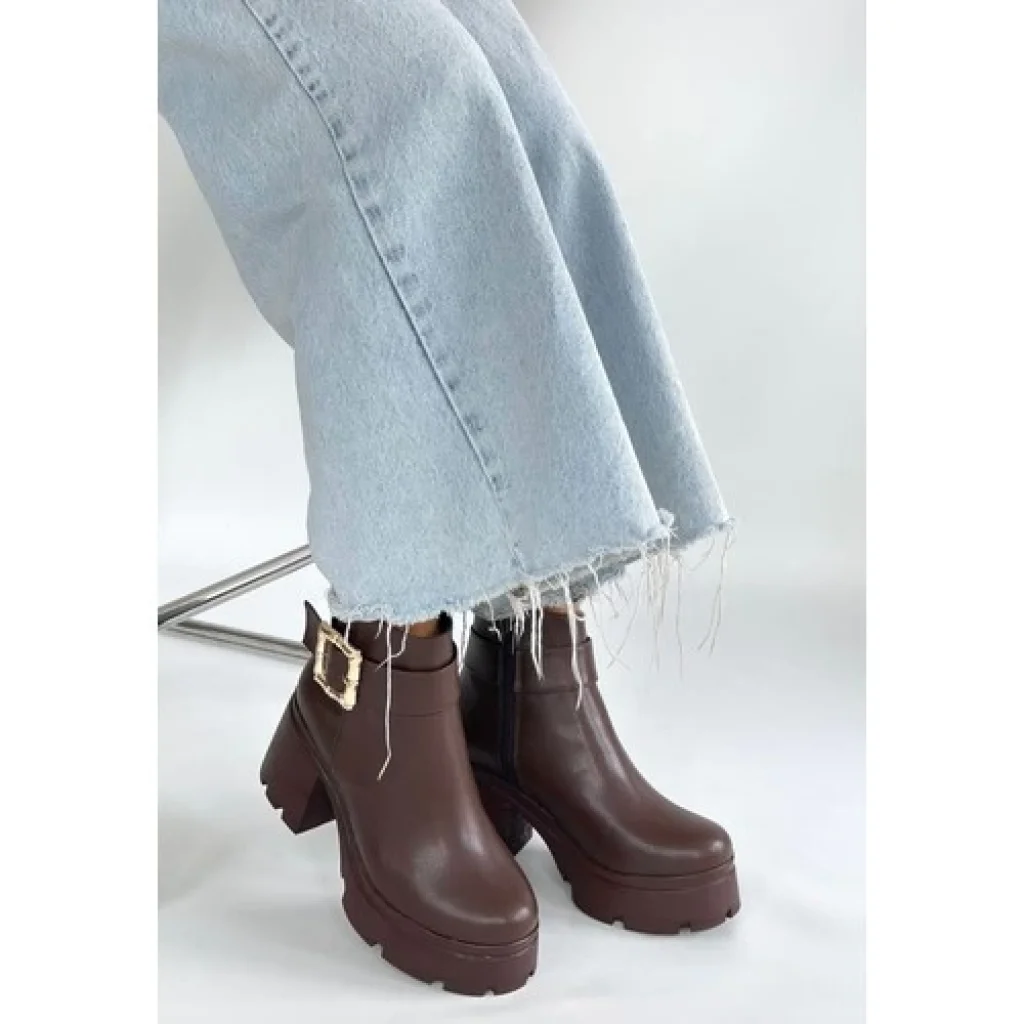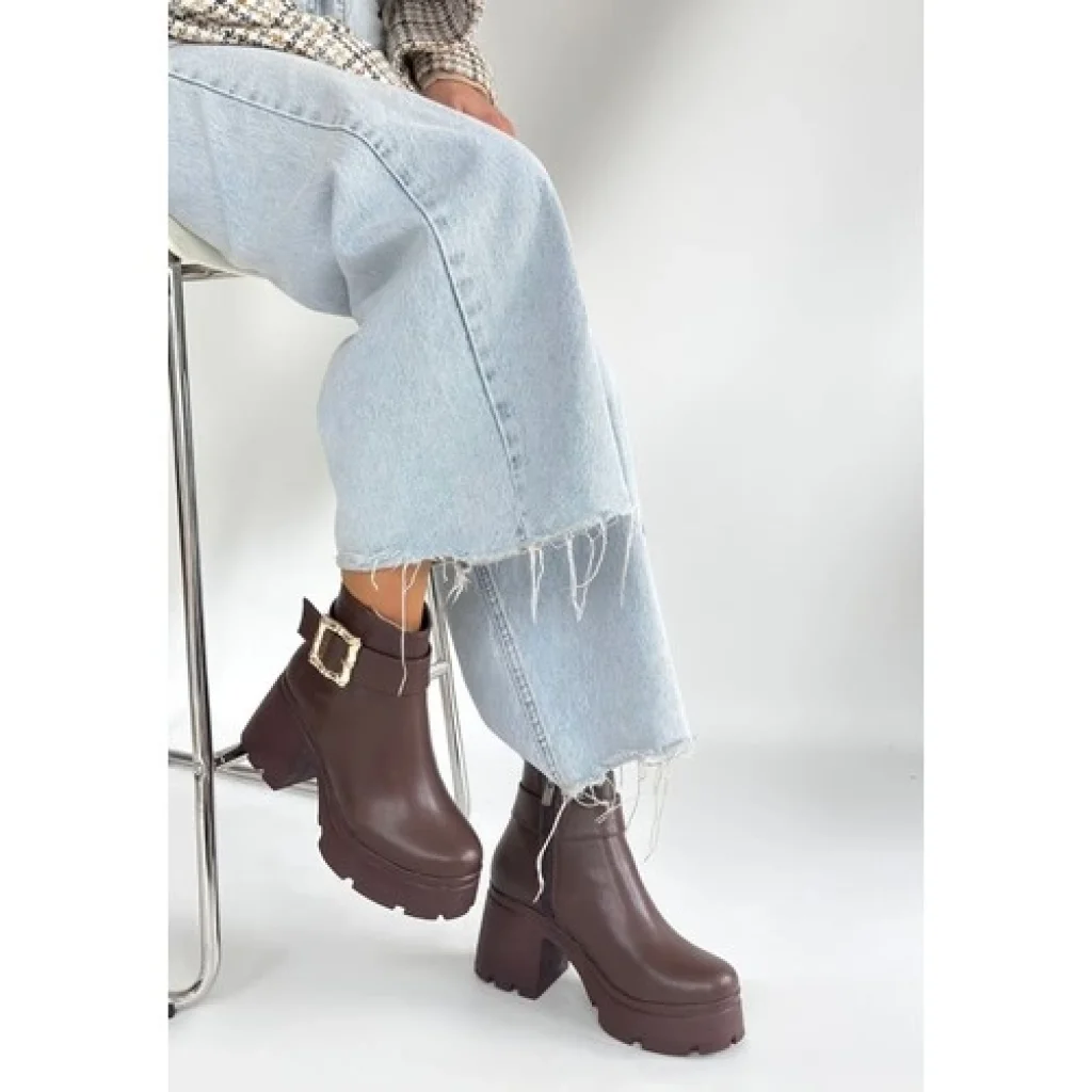 Erbilden Pinma Kahverengi Cilt Topuklu Bot