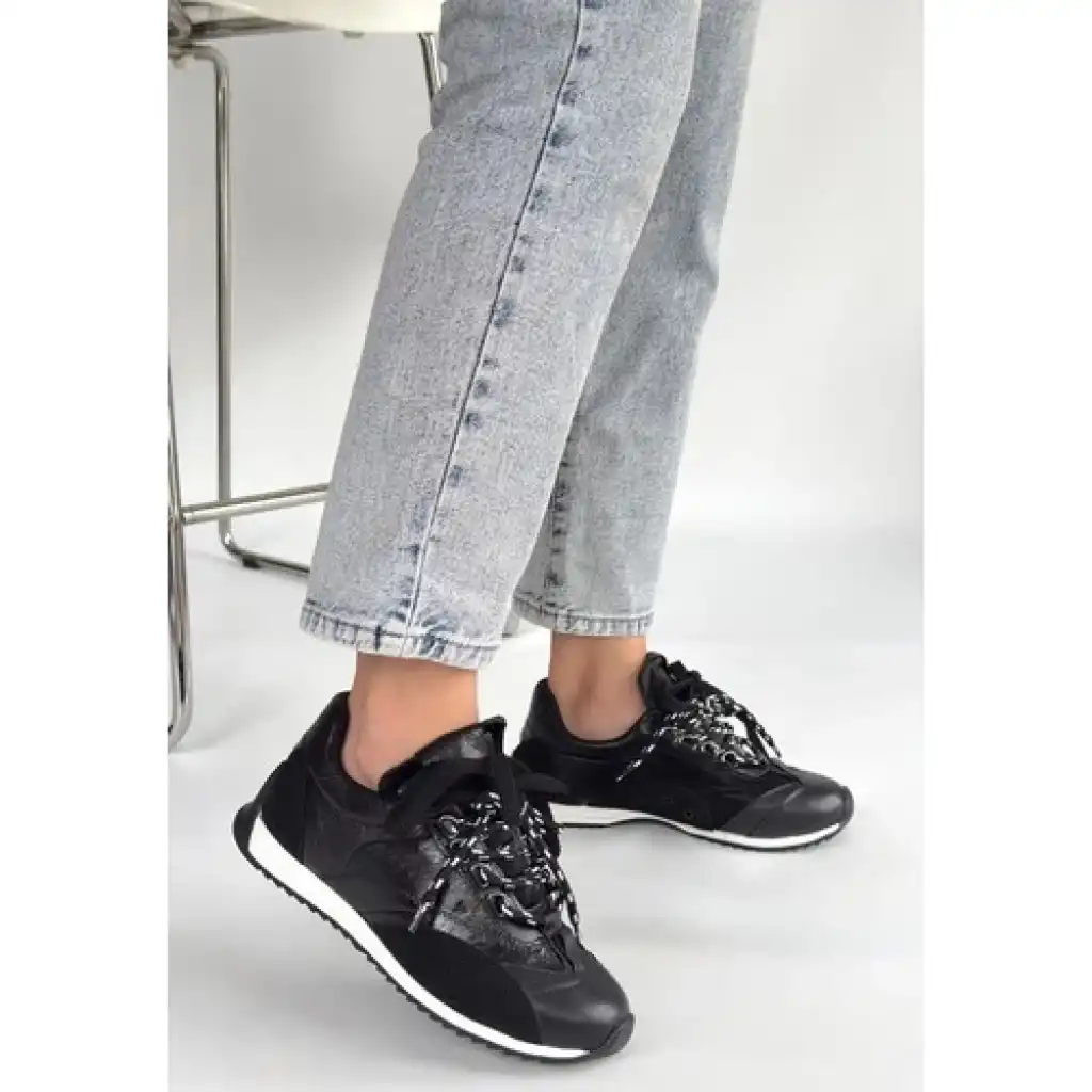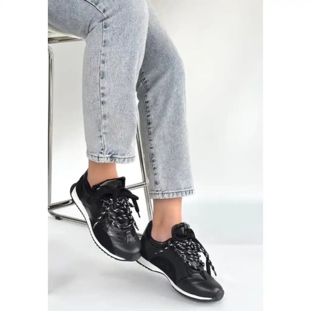 Erbilden Ranu Siyah Cilt Paraşüt Detaylı Bağcıklı Spor Ayakkabı
