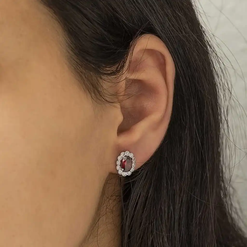 Gumush Gümüş Kırmızı Çiçek Desenli J Bayan Küpe