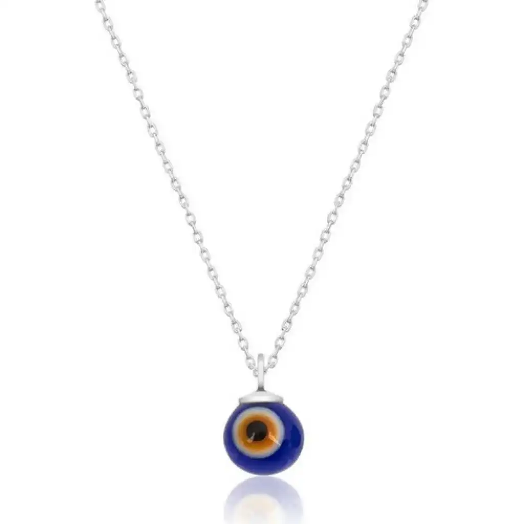 Gumush Gümüş Mavi Yuvarlak Camgöz Nazar Bayan Kolye