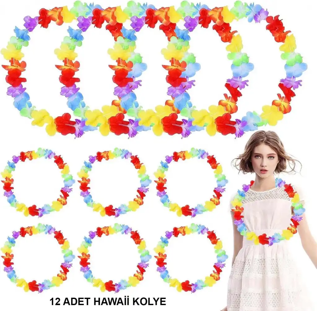 Hawaii Çiçekli Boyun Kolyesi 12 Adet