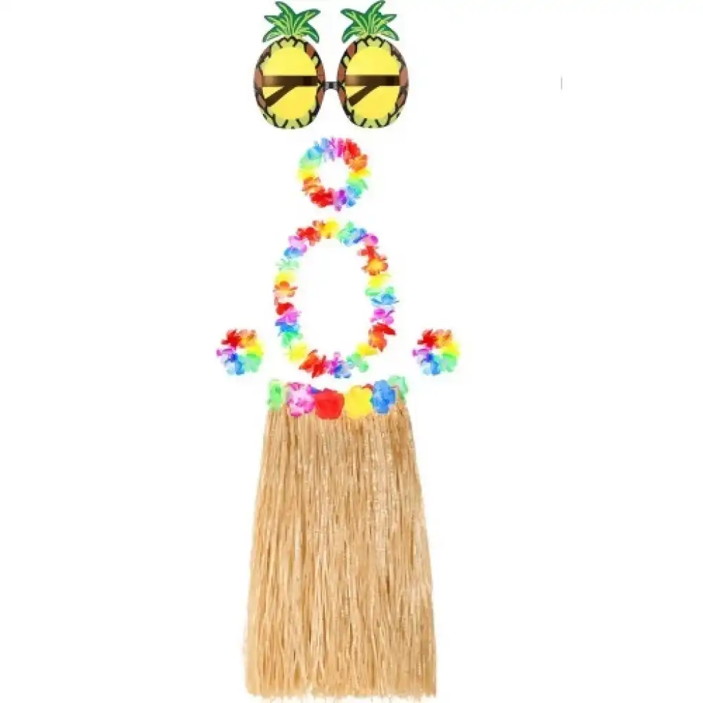 HAWAII PARTİ KOSTÜM SETİ - 60 CM HASIR ETEK, ÇİÇEKLİ AKSESUARLAR VE ANANAS GÖZLÜKÜrün Özellikleri