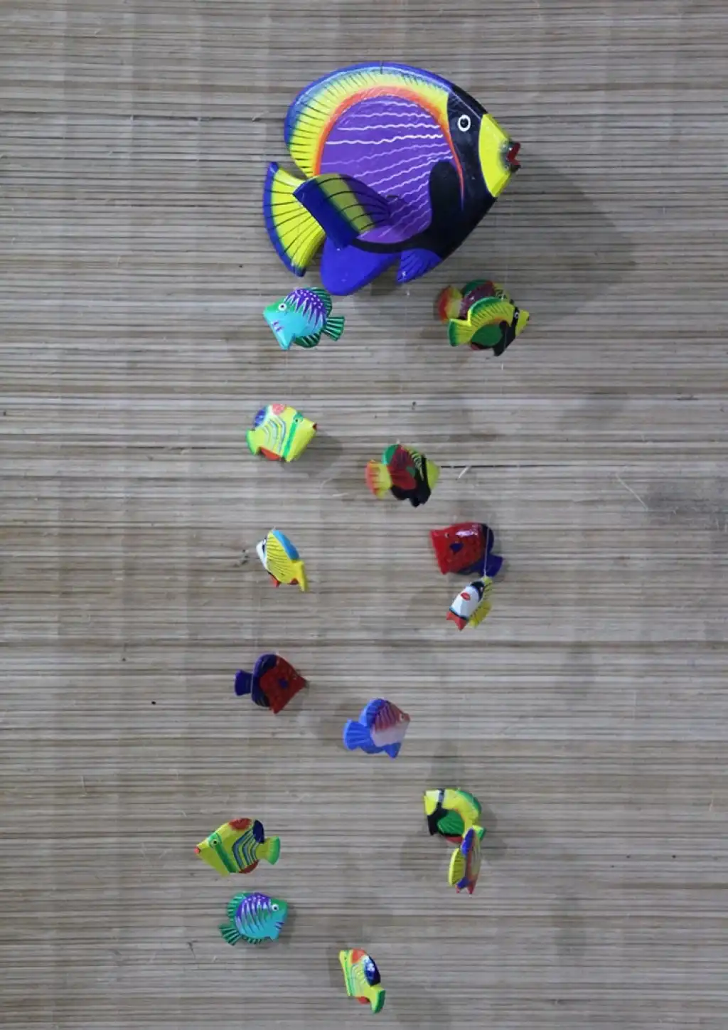 HAYVAN FİGÜRLÜ RÜZGAR ÇANI MODEL 2Ürün ÖzellikleriHayvan Figürlü Rüzgar Çanı Model 2, renkli balık figürleri ile tasarlanmış, doğal ahşap malzeme kullanılarak üretilmiştir. Renkli balık figürleri, deniz altı dünyasının enerjisini ve canlılığını yansıtarak mekanınıza renkli bir dokunuş katar. Rüzgarla hareket ettiğinde hoş ve melodik bir ses çıkaran bu çan, bahçe, balkon veya iç mekanlar için mükemmel bir dekoratif üründür. Canlı ve estetik tasarımı, mekanınıza neşe ve huzur katar. Hem dekoratif hem de fonksiyonel bir ürün olarak hem evde hem ofiste rahatlıkla kullanılabilir. Ayrıca, hediye olarak da şık bir seçenek sunar.Paket İçeriği1 adet Hayvan Figürlü Rüzgar Çanı Model 2