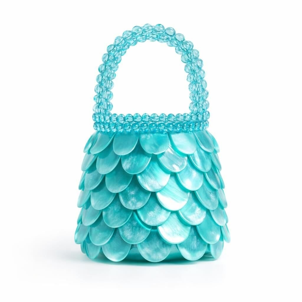 Çantanın dış yüzeyi, damla formunda hassas kesilmiş doğal sedef modüllerin, kontrollü bindirme (overlapping) tekniğiyle üç boyutlu bir kabuk mimarisi oluşturacak şekilde kurgulanmasıyla meydana gelir. Bu ölçekli katmanlama sistemi, yüzeyde ritmik bir akış sağlarken; ışığın farklı açılardan kırılmasını optimize eden yarı-organik bir doku üretir. Her bir sedef plaka, doğal malzemenin lif yönüne paralel biçimde işlenmiş olup, yüzey boyunca homojen bir parlaklık dağılımı elde edilmiştir.