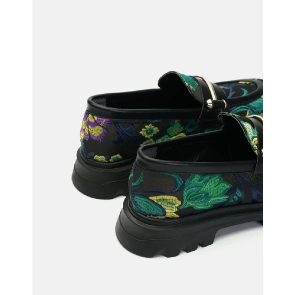 Jedi Kauçuk Tabanlı Etnik Desenli Kadın Oxford Ayakkabı - Yeşil