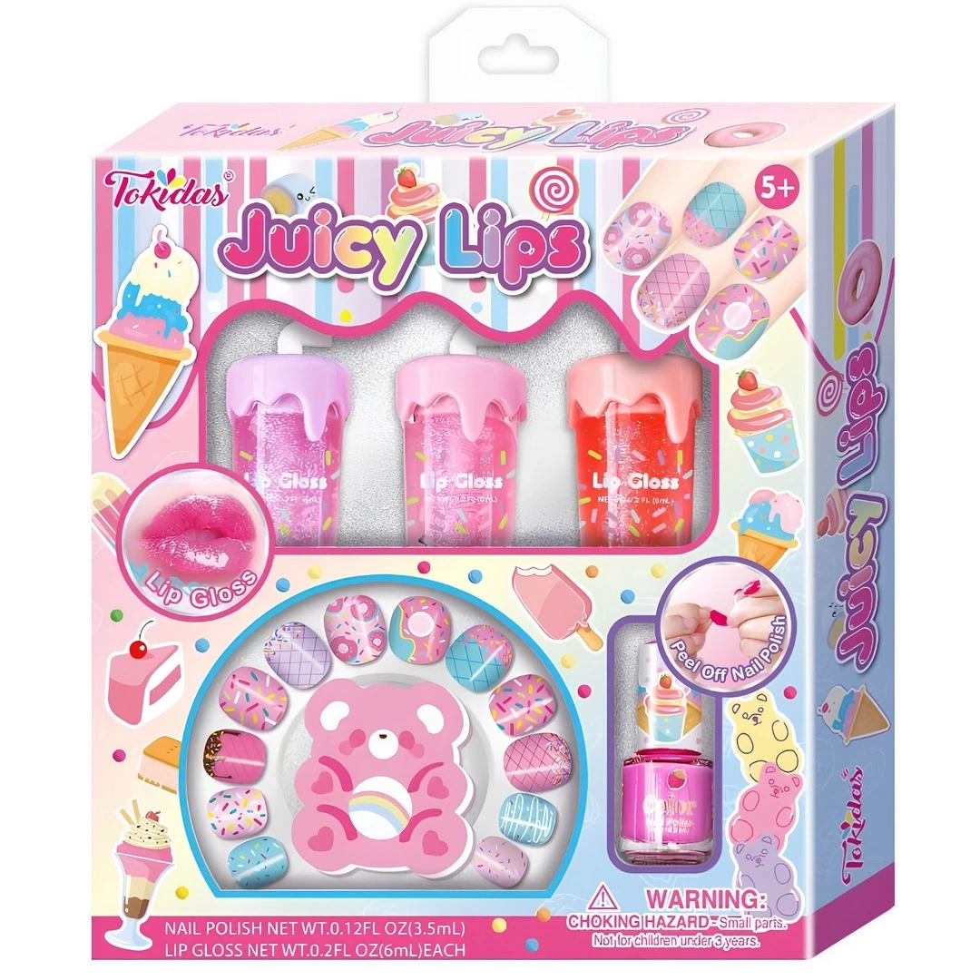 K.uuml;.ccedil;.uuml;k stil ikonları i.ccedil;in .ouml;zel olarak tasarlanmış Juicy Lips .Ccedil;ocuk Lipgloss ve Tırnak Seti, eğlenceli ve renkli tasarımıyla