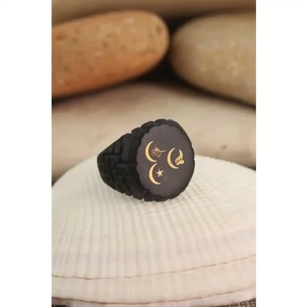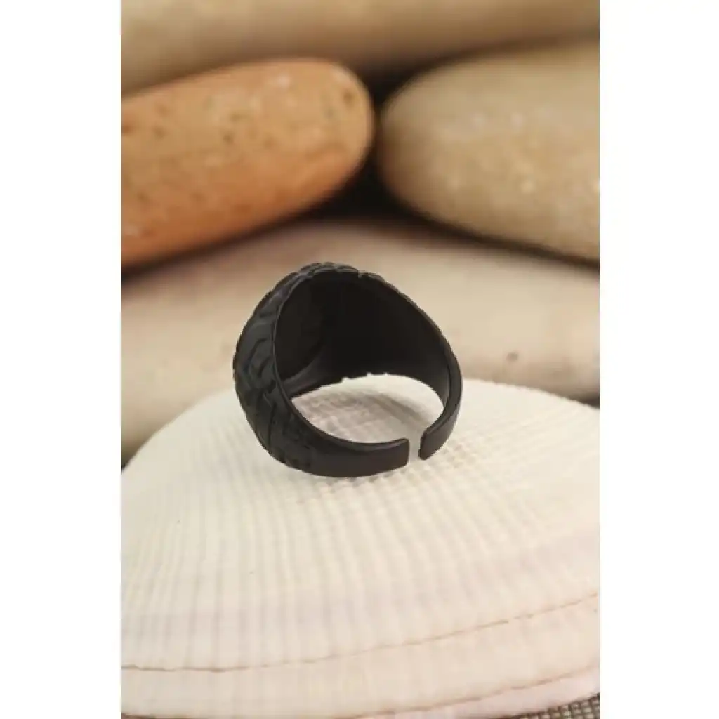Karce 3 Hilal Figürlü Siyah Renk Metal Ayarlamalı Erkek Yüzük