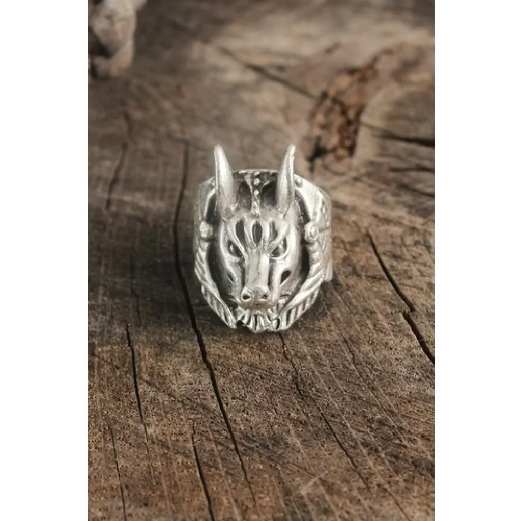 Karce Antik Gümüş Renk Anubis Model Ayarlanabilir Erkek Yüzük