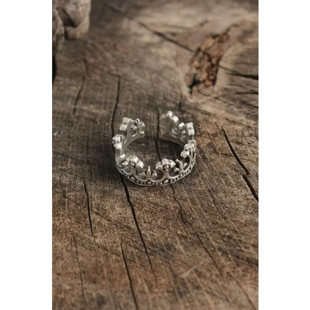 Karce Antik Gümüş Renk Taç Model Ayarlanabilir Erkek Yüzük