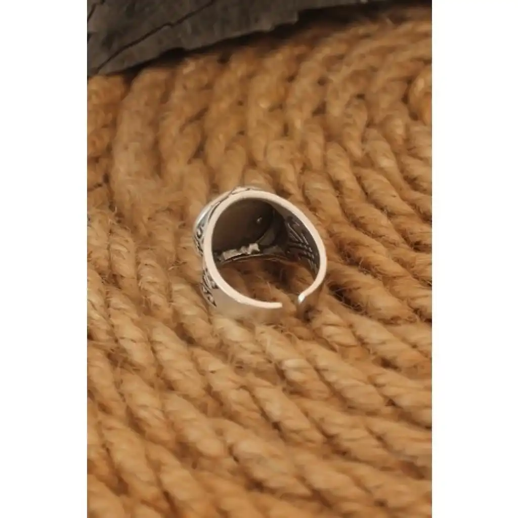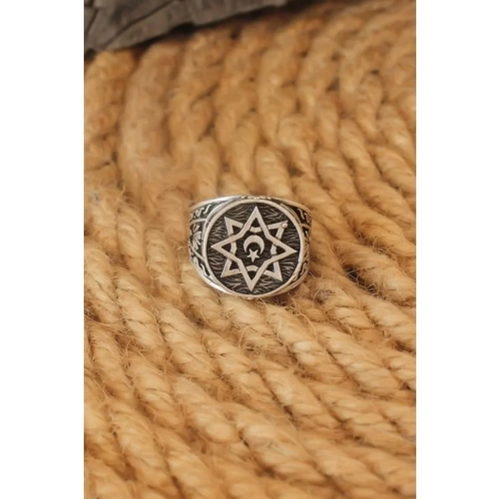 Karce Antik Gümüş Renk Yıldız Içi Ay Yıldız Ayarlanabilir Erkek Yüzük