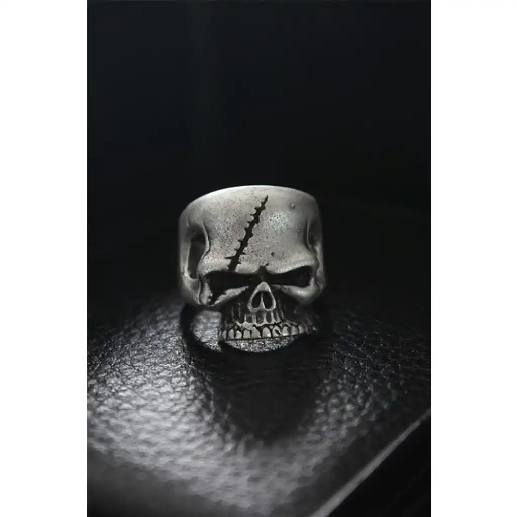 Karce Ayarlanabilir Yaralı Kurukafa Figürlü Erkek Yüzük