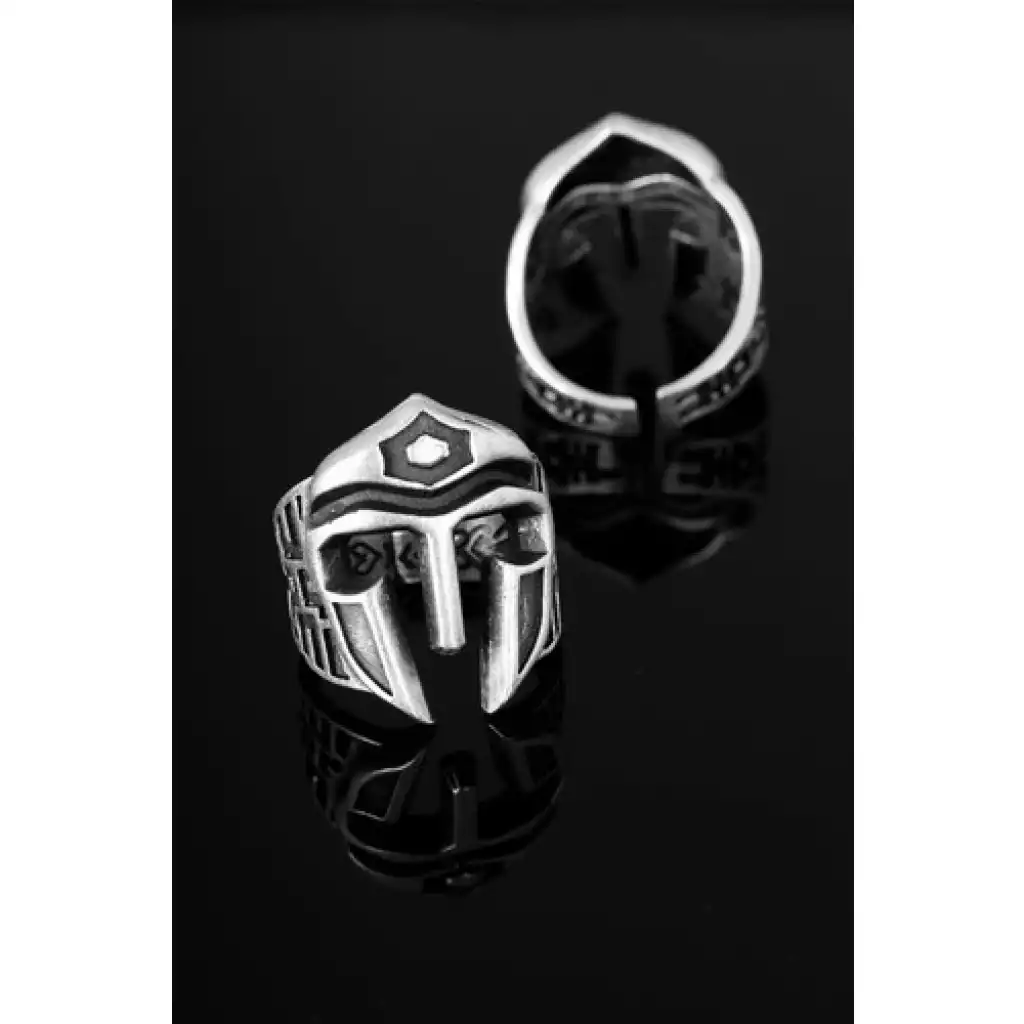 Karce Çelik Miğfer Figürlü Ayarlamalı Erkek Yüzük