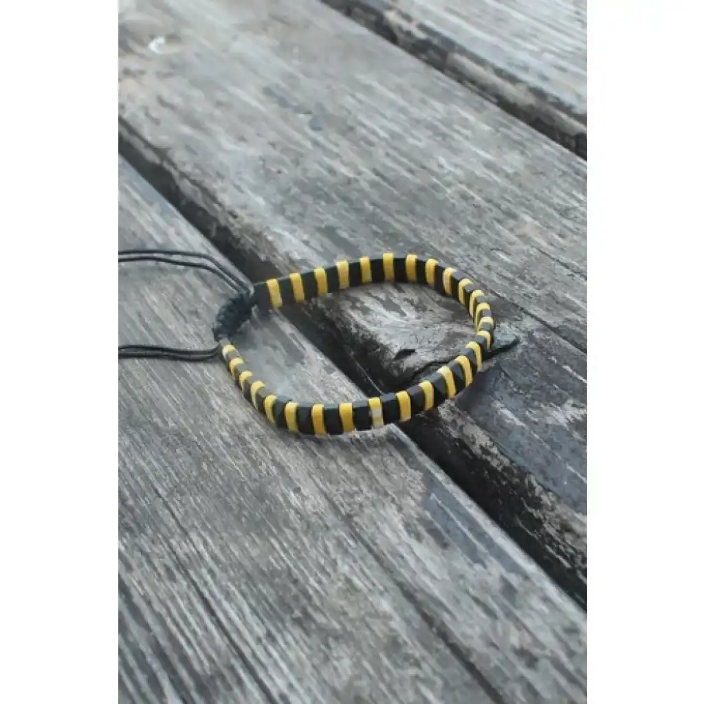 Karce CLZ741 - Sarı Siyah Renk Hematit Makrome Doğal Taş Erkek Bileklik