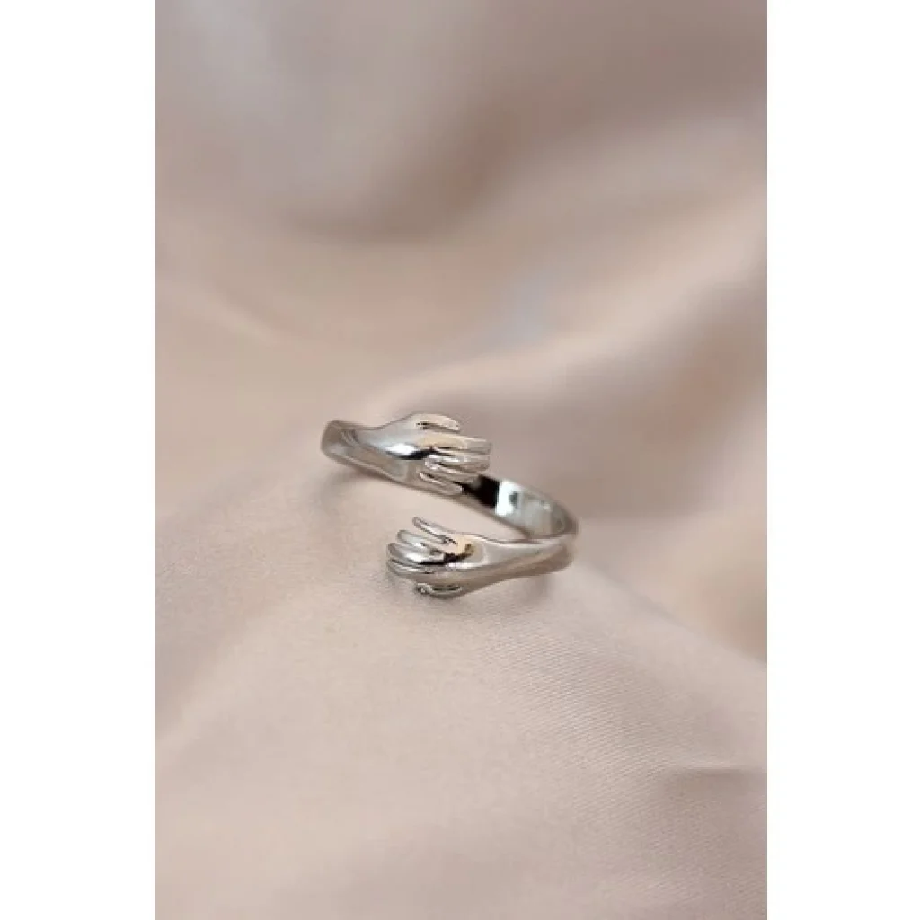 Karce CLZ943 Ayarlamalı Gümüş Renk Metal Sarılan Eller Model Yüzük