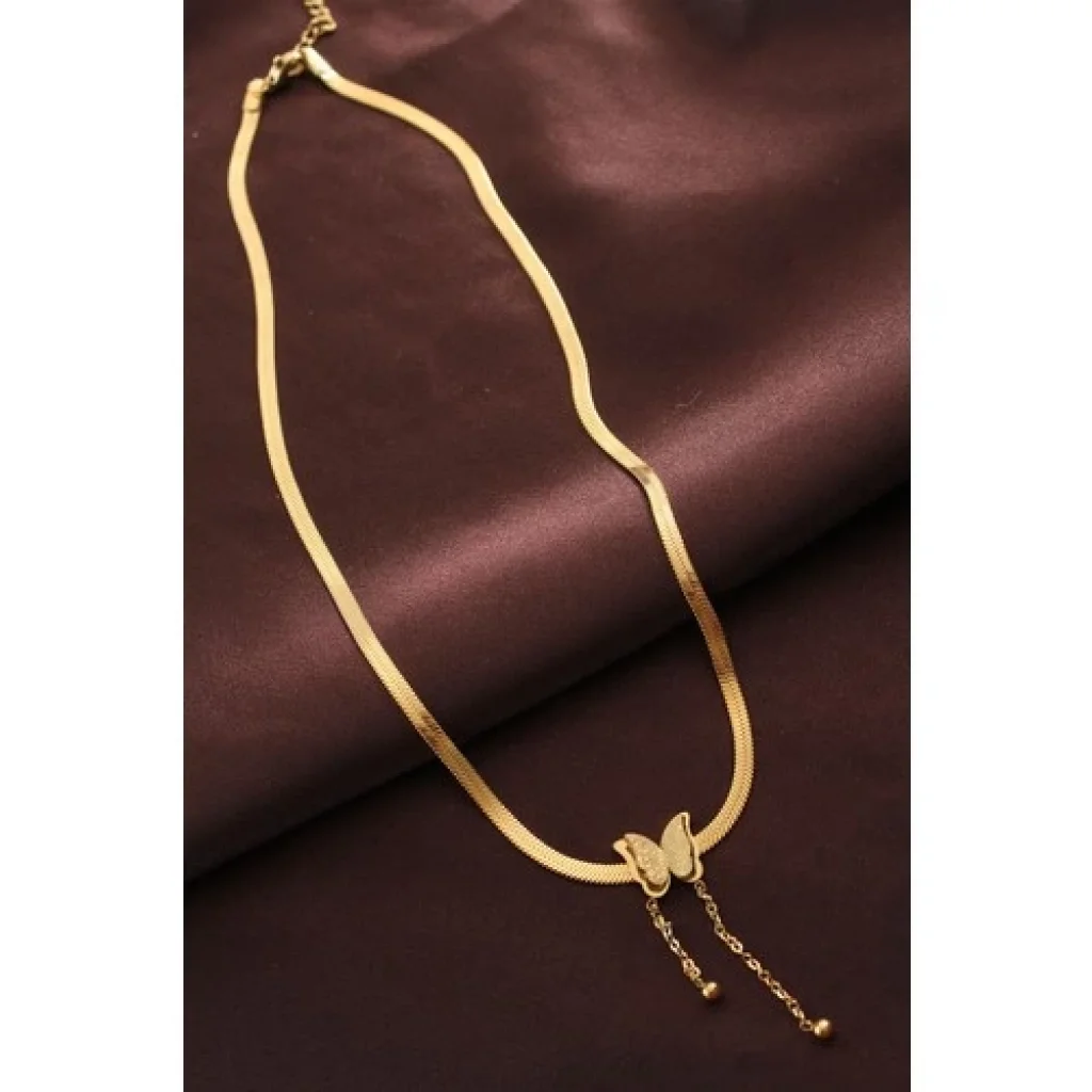 Karce CLZ943 Çelik Altın Renk Kelebek Italyan Zincir Kolye