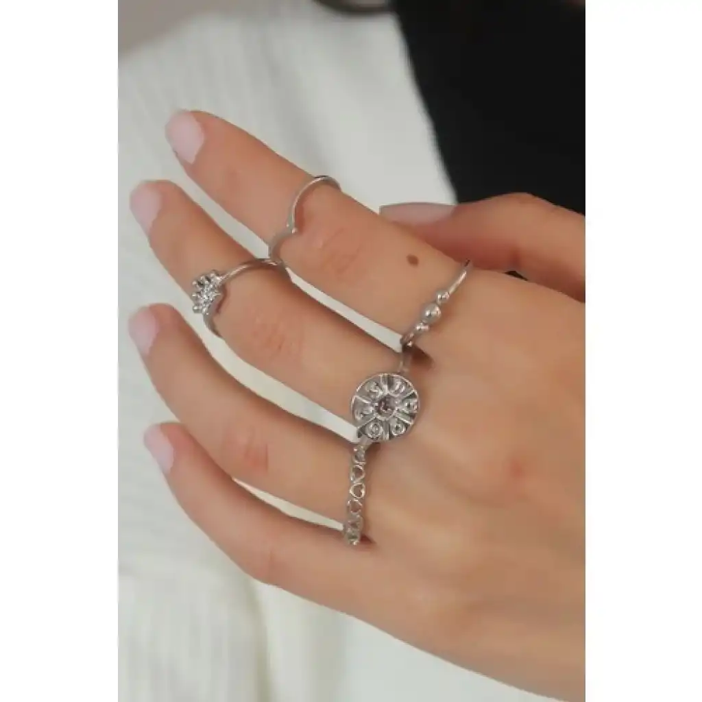 Karce CLZ943 Gümüş Renk Taç Figür Zirkon Taş Detay Kadın Yüzük Kombini