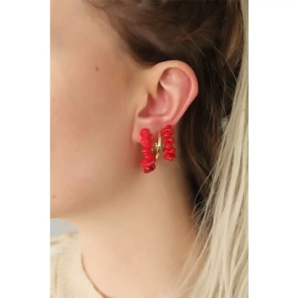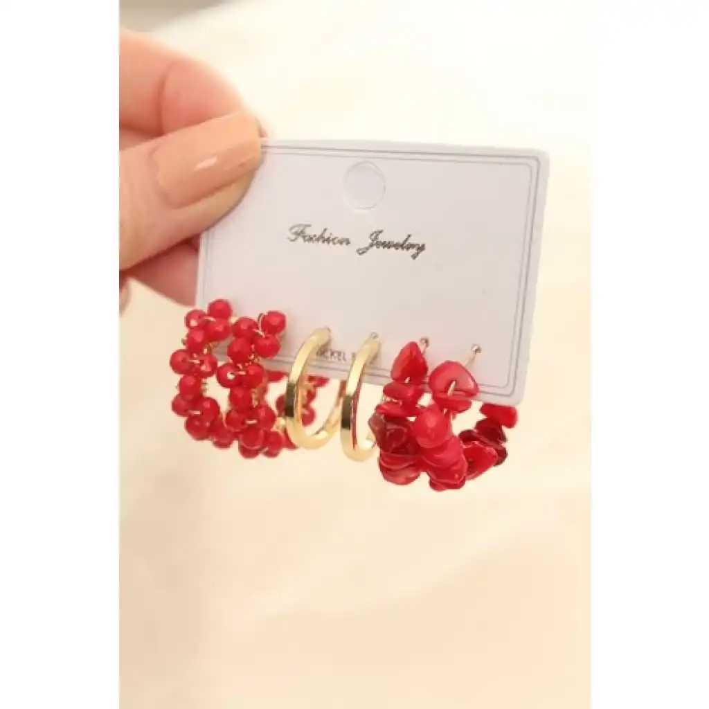 Karce CLZ943 Kırmızı Renk Doğal Taş Detay Küpe Seti