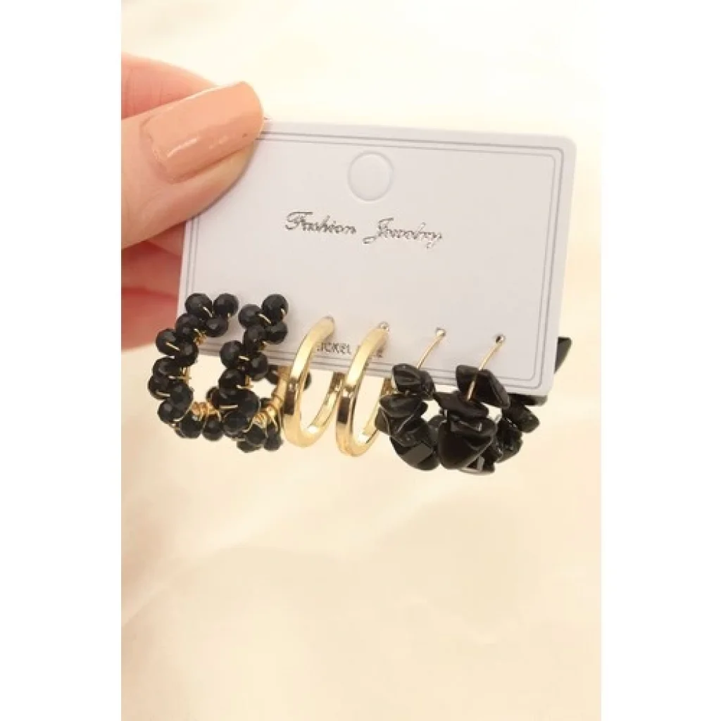 Karce CLZ943 Siyah Renk Doğal Taş Detay Küpe Seti