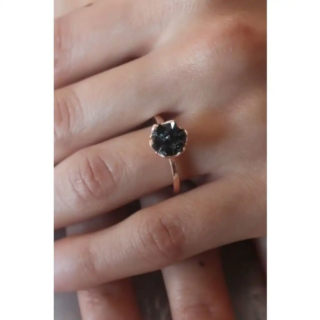 Karce CLZ943 Siyah Renk Lotus Çiçek Figür Gold Renk Kadın Yüzük