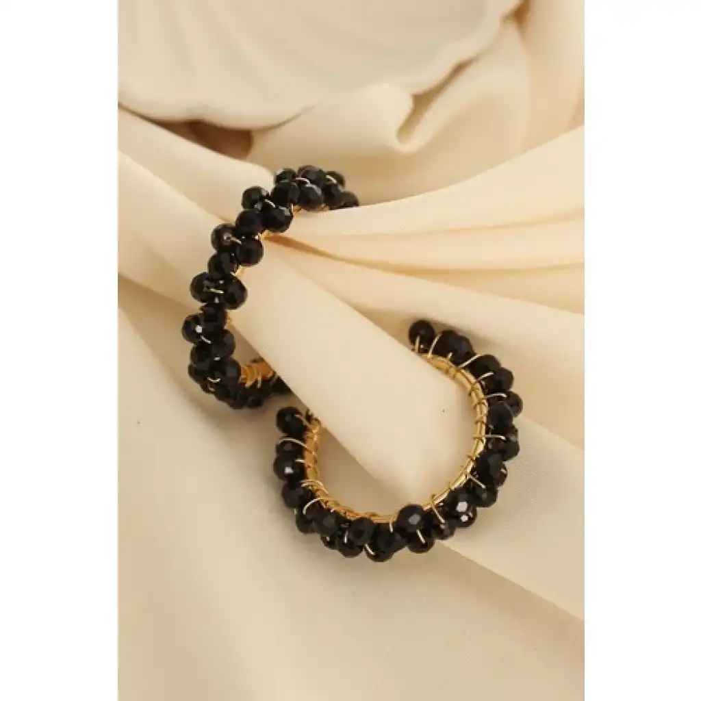 Karce CLZ943 Siyah Taşlı Halka Küpe