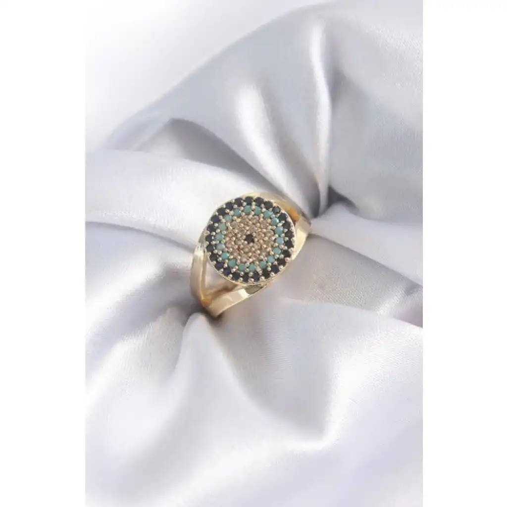 Karce Gold Renk Zirkon Taşlı Nazar Boncuk Model Kadın Yüzük