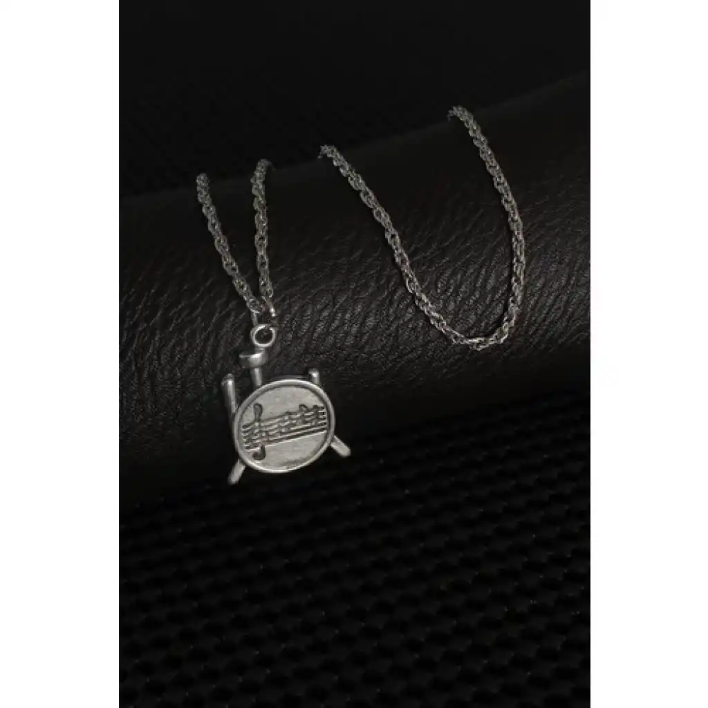 Karce Gümüş Renk Müzik Nota Işleme Erkek Kolye