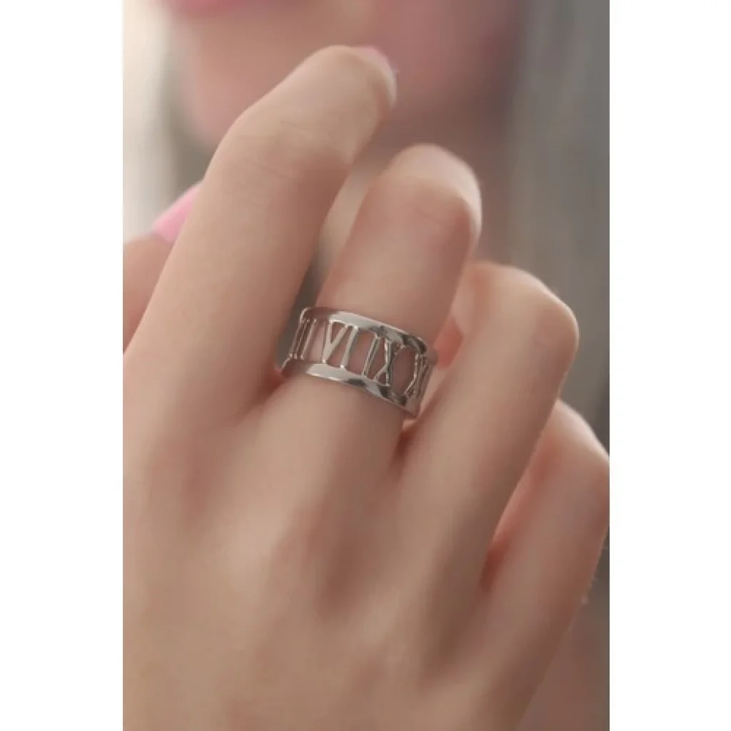 Karce Gümüş Renk Roma Rakam Model Kadın Yüzük