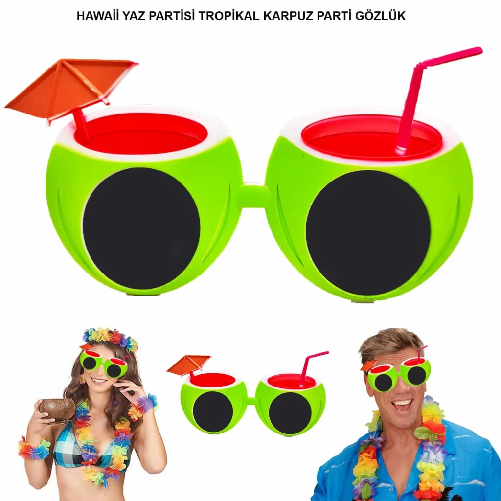 KARPUZ ŞEKİLLİ TROPİKAL HAWAII GÖZLÜĞÜÜrün ÖzellikleriKarpuz Şekilli Tropikal Hawaii Gözlüğü, yazın enerjik ve renkli havasını yansıtan eğlenceli bir aksesuardır. Karpuz dilimi tasarımı, tropikal bir hava katarak dikkat çekici bir görünüm sunar. Yaza merhaba etkinliklerinde, plajda veya yaz festivallerinde kullanılabilecek mükemmel bir aksesuardır. Işıltılı ve renkli tasarımıyla fotoğraflarda harika bir görünüm sağlar ve her türlü yaz partisi için ideal bir seçenektir.Paket İçeriği1 Adet Karpuz Şekilli Tropikal Hawaii Gözlüğü
