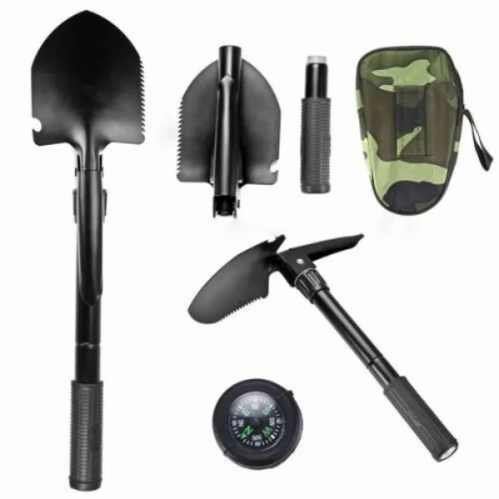 PORTATİF KAZMA KÜREK SETİ Doğatutkunları ve kampçılar için özel olarak tasarlanmış çok fonksiyonlu,Katlanabilir Kazma Kürek Seti !Cebinizdede rahatça taşıyabilirsiniz.PortatifKazma Kürek Seti oldukça fazla kullanım alanı sunuyor, kazma, kürek, testere,şişe açacağı, pusula !KatlanabilirKazma Kürek Setinin kolayca kemerinizde taşınmasını sağlayan çantası ile kazma,kürek, testere, şişe açacağı ve pusulanız daima yanınızda !  Paket İçeriği 1 adetkatlanır kazma kürek seti1 adettaşıma çantası