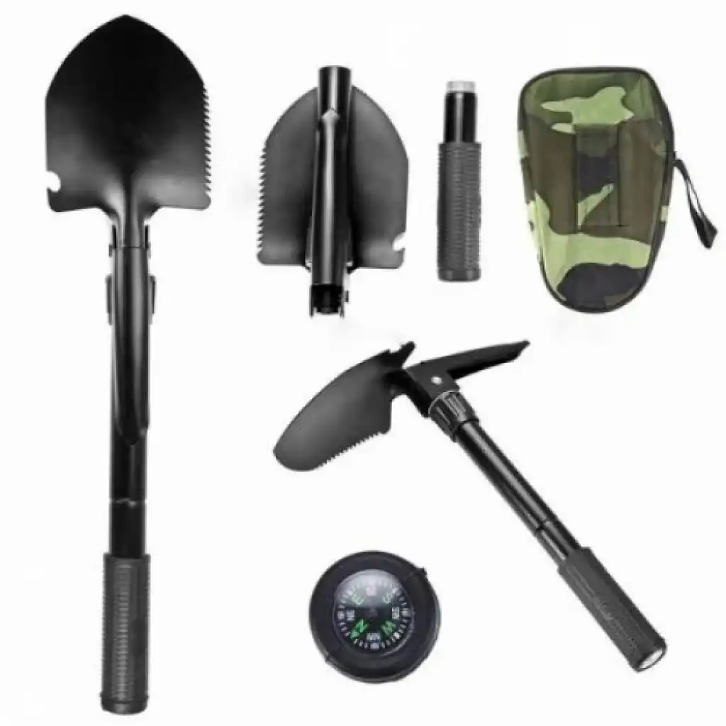 PORTATİF KAZMA KÜREK SETİ Doğatutkunları ve kampçılar için özel olarak tasarlanmış çok fonksiyonlu,Katlanabilir Kazma Kürek Seti !Cebinizdede rahatça taşıyabilirsiniz.PortatifKazma Kürek Seti oldukça fazla kullanım alanı sunuyor, kazma, kürek, testere,şişe açacağı, pusula !KatlanabilirKazma Kürek Setinin kolayca kemerinizde taşınmasını sağlayan çantası ile kazma,kürek, testere, şişe açacağı ve pusulanız daima yanınızda ! Paket İçeriği 1 adetkatlanır kazma kürek seti1 adettaşıma çantası