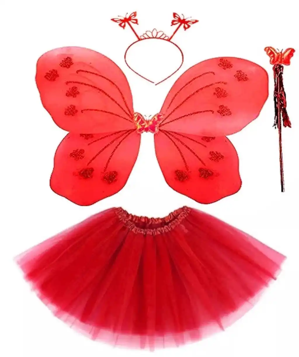 KIRMIZI KELEBEK KOSTÜMÜ - KOSTÜM AKSESUAR SETİ 4 PARÇAÜrün ÖzellikleriKırmızı kelebek kostümü, çocuklar için özel olarak tasarlanmış eğlenceli ve şık bir aksesuar setidir. Set içerisinde bir kelebek tacı, etek, kelebek kanadı ve asa bulunmaktadır. Hafif ve konforlu yapısı sayesinde çocuklar için rahat bir kullanım sunar. Kanatlar esnek lastik detayları ile kolayca takılıp çıkarılabilir. Parlak ve zarif tasarımı ile doğum günü partileri, gösteriler, kostüm etkinlikleri ve özel günlerde şık bir görünüm sunar.Paket İçeriği1 Adet Kelebek Tacı1 Adet Etek1 Adet Kelebek Kanadı1 Adet Asa