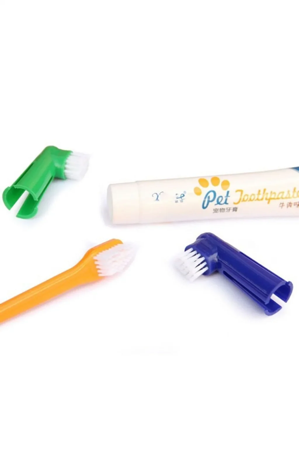 KÖPEK AĞIZ BAKIM SETİPet diş macunu seti, 1 adet iki kafalı diş fırçası, 1 adet diş macunu ve 1 adet parmak diş fırçası içerir. Diş macunu, yenilebilir ve güvenli bir formülle tasarlanmış olup, vanilya ve sığır eti lezzetlerine sahiptir. Diş fırçasının kılları yumuşak olduğundan, köpeğin dişlerini koruma amacıyla idealdir. Parmak diş fırçası ise birden fazla açıdan temizleme sağlar, köpeğin rahat hissetmesini destekler. Setin boyutu 25*11cm olup, plastik malzemeden üretilmiştir.Paket İçeriği1 adet köpek ağız bakım seti