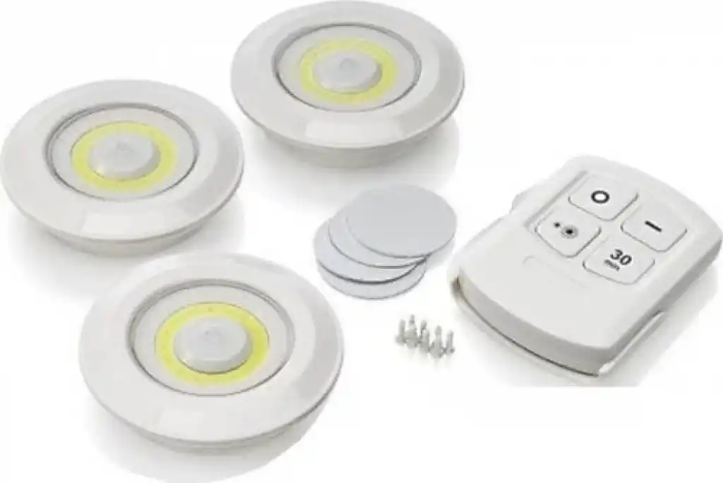 KUMANDALI LAMBA SETİ 3 ADETİster salonunuzda,ister banyonuzda,ister mutfağınızda ister oturma odanızda istersenizde kampdaBasit ve Pratik kurulumu ile hiç bir tesisat bağlantısı gerektirmeden kolay kullanım !Uzaktan kumandası ile yerinizden kıpırdamadan kontrol etme imkanı tanır.İki kademe ışık ayarı ve 30 dk zaman ayarlıyıcı mevcuttur.İsterseniz kumandasız spotun ortasına basarakta çalıştırma imkanı sağlamaktadır.3+AAA pille çalışmaktadır.Hiç bir tesisat bağlantısı gerektirmez.Çift taraflı bant ile istediğiniz her yere kolayca montajını sağlar, pil değişimi sırasında arka kapağı çevirip açarak sağlayabilirsiniz.Paket İçeriği 3 Adet Spot LambaKontrol KumandasıTeknik AçıklamaBoyutlar: 9 cm-2 cm Kumanda 8 cm 6 cm 2 cmIşık Özelliği: 3 Adet Ultra SMD Power LedIşık Rengi: Beyaz ( Gün Işığı )Çalışma Süresi: 15 Saat / 30 Dakika AyarlanabilirGövde Malzemesi: Sert PlastikKullanım Özellikleri: Yapışkanı İle Sabitlenir ve Masa Üstü Kullanım ÖzelliğiTeknik Özellikleri: Her Ürün 3 Adet AAA Pil ile AydınlatmaKutu İçeriği : Ürün Ve Duvara Sabitleme Yapışkanı KumandasıAmpül Ömrü: 100.000 SaattirKullanım Yeri: Av, Kamp, Ev, Okul, Araba, Otel, Restorantlar