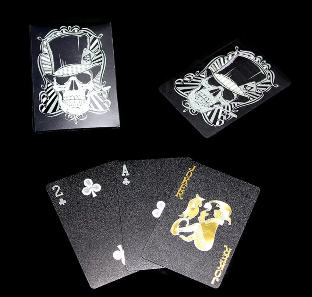 KURU KAFA OYUN KARTI MODEL 1Ürün ÖzellikleriÖzgün tasarımıyla dikkat çeken kuru kafa oyun kartı, gotik ve karizmatik bir tarz sunmaktadır. Siyah zemin üzerine altın ve beyaz detaylarla işlenmiş özel tasarım kartlar, oyun deneyiminize farklı bir hava katmaktadır. Kaliteli malzemeden üretilmiş olup uzun süreli kullanım sağlar. Poker, pişti, blackjack gibi kart oyunları için idealdir.Paket İçeriği1 Adet Kuru Kafa Temalı Oyun Kartı Seti