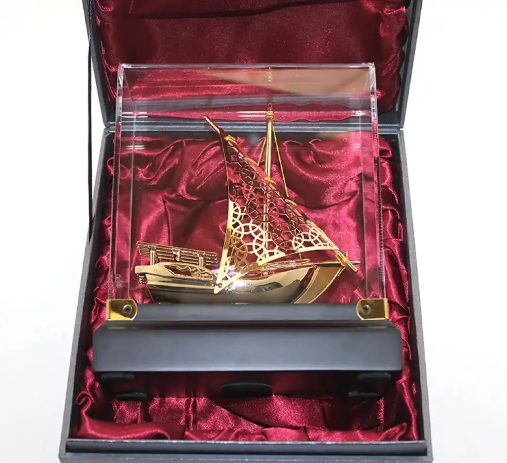 KUTULU PİRİNÇ GEMİÜrün ÖzellikleriKutulu Pirinç Gemi, göz alıcı tasarımı ve detaylı işçiliğiyle dekorasyonunuza şıklık katar. Altın rengi pirinç malzemesi ve özel kutulu tasarımı sayesinde koleksiyonluk bir obje olarak da değerlendirilebilir. Şeffaf koruma kutusu, ürünün zarar görmesini engelleyerek uzun ömürlü kullanım sunar. Denizcilik temalı dekorasyonlar, ofis masaları, çalışma alanları ve vitrin süslemeleri için ideal bir tercihtir. Hem kendiniz için hem de özel ve anlamlı bir hediye olarak tercih edebileceğiniz prestijli bir dekoratif aksesuardır.Paket İçeriği1 Adet Kutulu Pirinç Gemi
