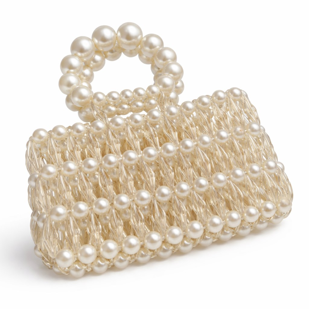 Çantanın gövdesi, beyaz incilerin şeffaf ve yüksek elastikiyetli monofilament misina ile döngüsel, ilmek benzeri bir örgü sistemi içinde birleştirilmesiyle oluşturulmuştur. Bu örgü tekniği, incilerin arasında bilinçli olarak bırakılan mikro aralıklar sayesinde, yüzeye klasik bir kaplama hissi yerine mesh / ağ dokulu, hafif ve katmanlı bir karakter kazandırır. Yapı, sertlikten çok kontrollü esnekliğe dayanır.