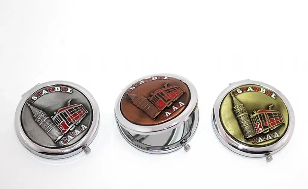 METAL İSTANBUL KABARTMALI EL AYNASIÜrün Özellikleri7x7 cm boyutlarındaki metal İstanbul kabartmalı el aynası, zarif ve şık bir tasarıma sahiptir. İstanbul'un kültürel motifleriyle süslenmiş olan bu aynanın kabartmalı deseni, ona estetik bir görünüm katmaktadır. Metal malzeme sayesinde dayanıklı ve uzun ömürlüdür. Hem işlevsel hem de dekoratif bir aksesuar olarak kullanılabilir. Geleneksel bir dokunuş ve şıklık arayanlar için mükemmel bir hediye veya dekoratif objedir.Paket İçeriği1 adet metal İstanbul yöresel kabartmalı el aynası (tekli fiyat)