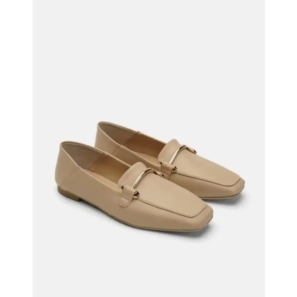 Miha Düz Deri Ithal Aksesuarlı Kadın Babet - Ten