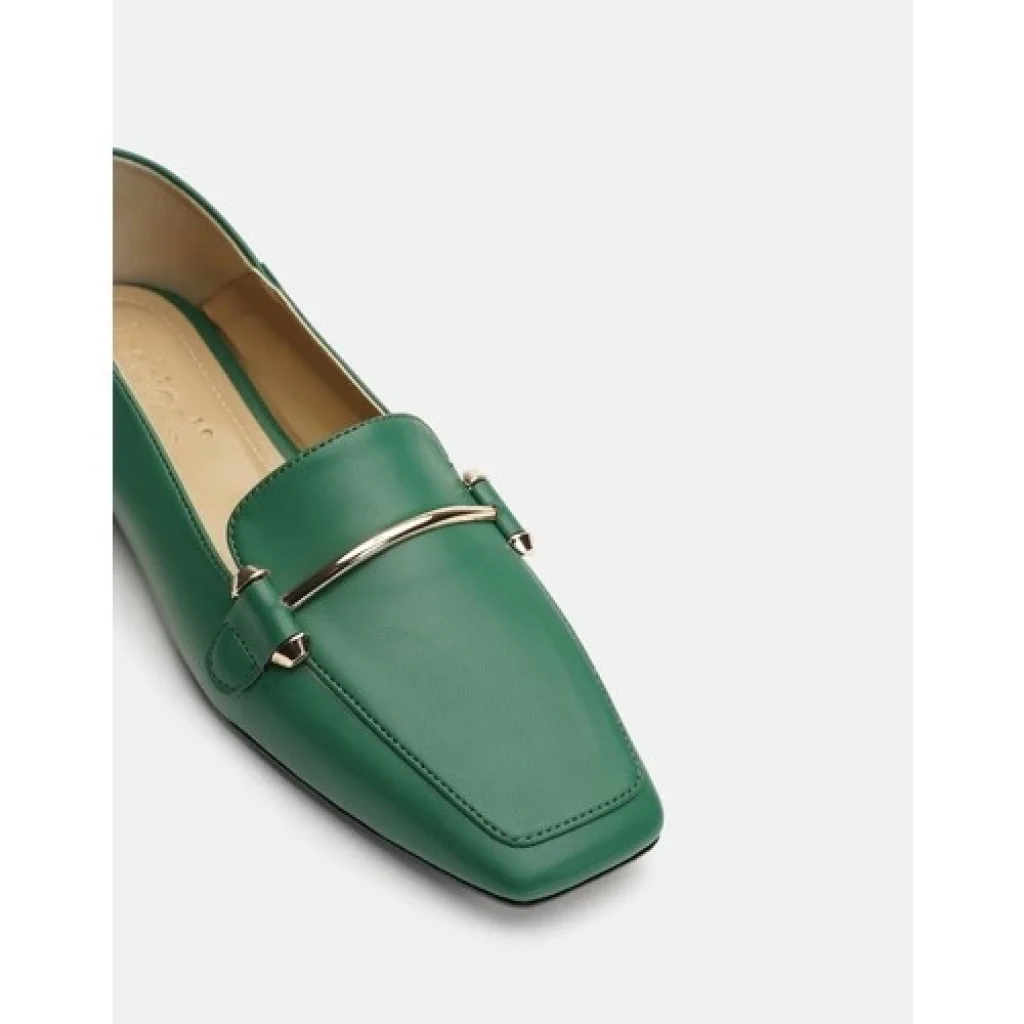 Miha Düz Deri Ithal Aksesuarlı Kadın Babet - Yeşil