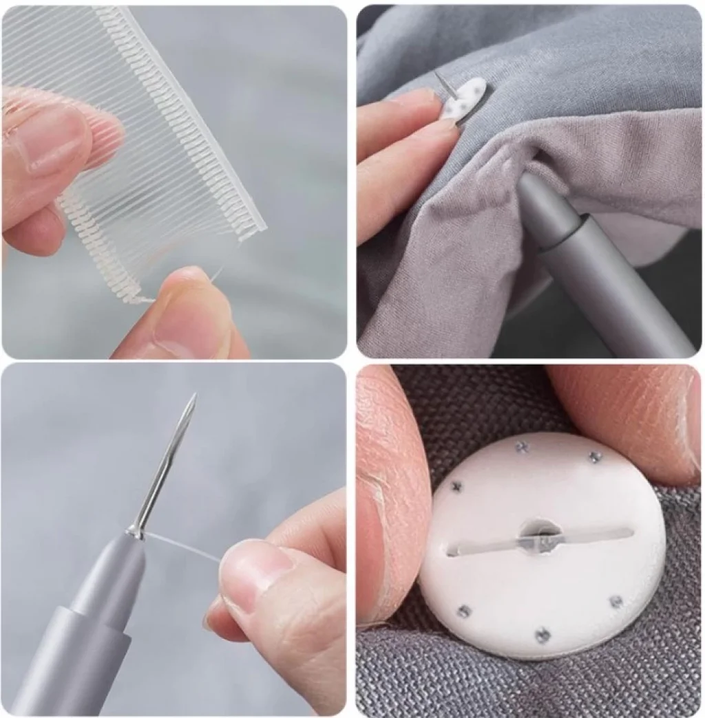 NEVRESİM SABİTLEME SETİÜrün ÖzellikleriYorgan ve yorganların demetlenmesini ve kaymasını önleyin , çok rahat vedinlenmiş bir gece uykusu için rahatlık ve düz tabakanın daha yakındanoturmasını sağlayın. Çok amaçlı Süslemeleri, perdeleri asmak, diğer kumaşkaymalarını sabitlemek ve çok daha fazlası için iğnesiz sabitleme eserinikullanabilirsiniz! Yatağın her köşesi için çapraz olarak kullanılan bir kapakklipsleri, tüm 4 köşesine çok kolay takılır ve saniyeler içinde yaratıcı tokatasarımına ayrılabilir.Paket İçeriği 400 -Plastik Kılçık İp 1.5 cm40- Plastik Pul1- Sabitleme Tabancası