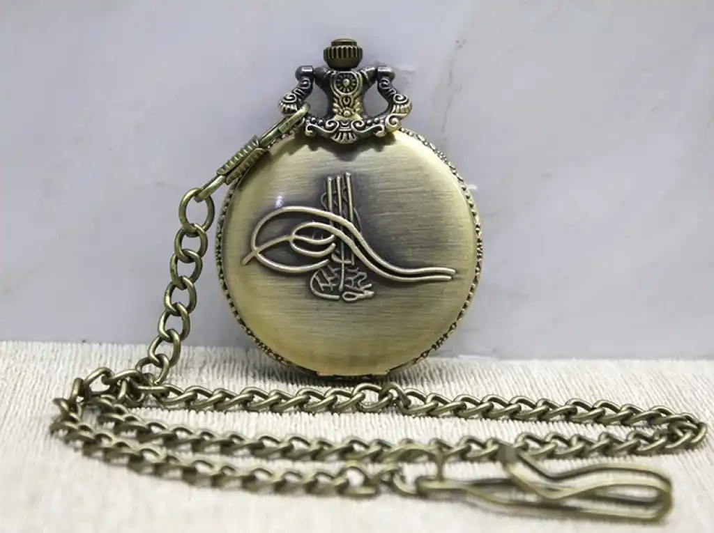 OSMANLI TUĞRALI KÖSTEKLİ SAATÜrün ÖzellikleriOsmanlı tuğralı köstekli saat, nostaljik ve otantik tasarımıyla dikkat çeken şık bir aksesuardır. Bronz kaplama metal gövdesi, Osmanlı tuğrası kabartmalı kapağı ve klasik zincirli tasarımı ile tarihî dokuyu yansıtır. Açılır kapak özelliği sayesinde kadran kolayca görülebilir ve rahat kullanım sağlar. Hem günlük kullanım hem de koleksiyon severler için ideal bir seçimdir.Paket İçeriği1 Adet Osmanlı Tuğralı Köstekli Saat
