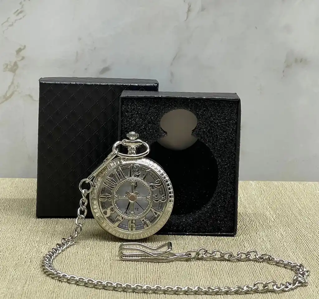 ÖZEL KUTULU RAKAMLI GÜMÜŞ KÖSTEKLİ SAATChatT:Ürün ÖzellikleriÖzel kutulu rakamlı gümüş köstekli saat, nostaljik tasarımı ve klasik detaylarıyla dikkat çeker. 4x5 cm boyutunda olan bu zarif aksesuar, ön yüzünde rakamlı motiflerle süslenmiş şık bir tasarıma sahiptir. Gümüş rengi ve zincirli yapısıyla hem koleksiyonluk bir parça hem de günlük kullanım için uygundur. Özel kutusu sayesinde uzun süre korunabilir ve hediye alternatifi olarak tercih edilebilir. Dayanıklı metal malzemeden üretilmiş olup uzun ömürlü kullanım sunar.Paket İçeriği1 adet Özel Kutulu Rakamlı Gümüş Köstekli Saat