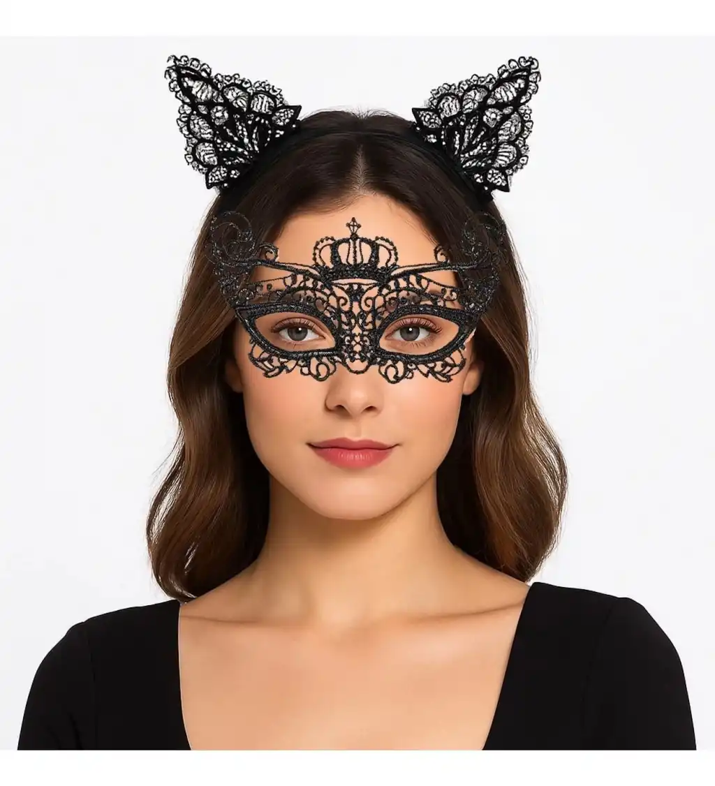 Parti Gecesi Siyah Dantel Maske Ve Taç Seti 9 No