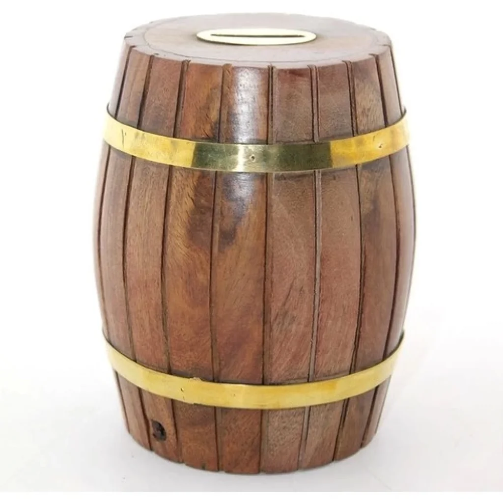 Pirinç Ahşap Fıçı Kumbara 12.5 cm WB535