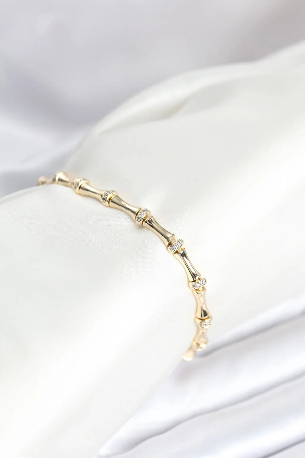 Pirinç Gold Renk Kemik Model Zirkon Taşlı Kadın Bileklik