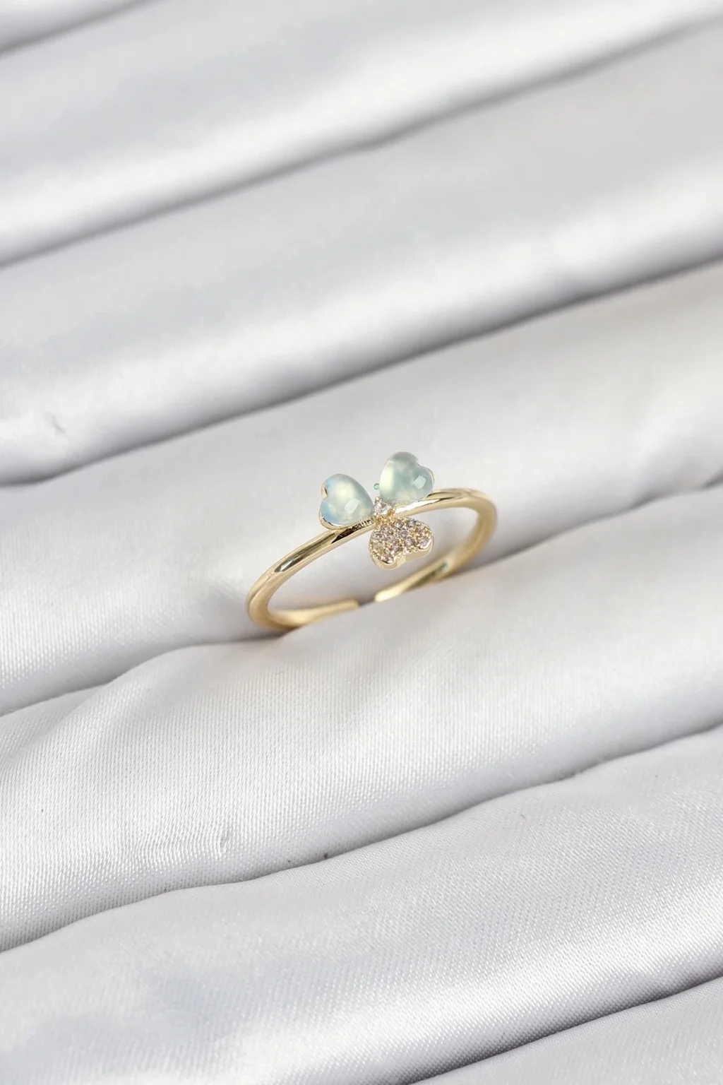 Pirinç Gold Renk Yonca Model Kadın Yüzük