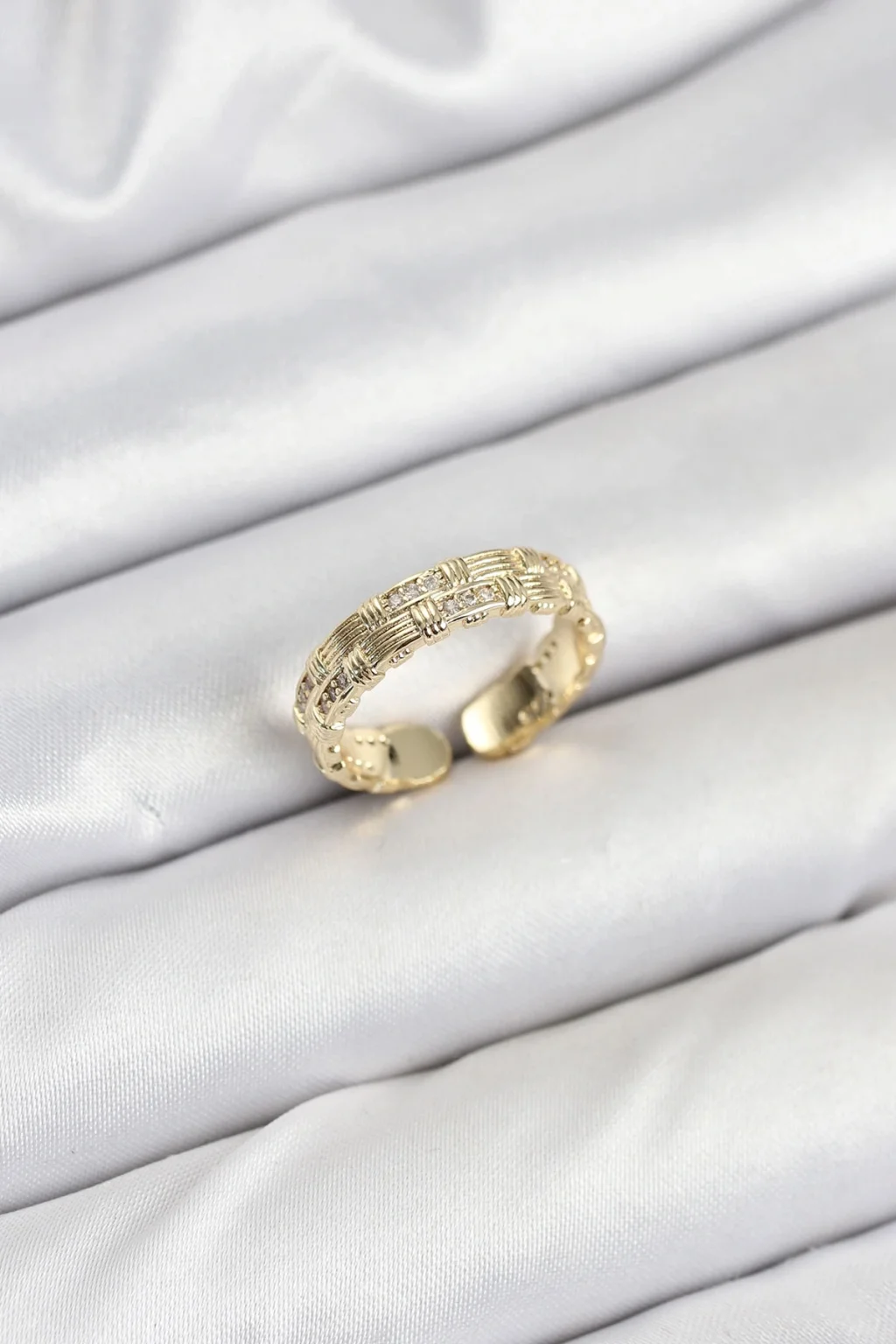 Pirinç Gold Renk Zirkon Taşlı Sırım Kadın Yüzük