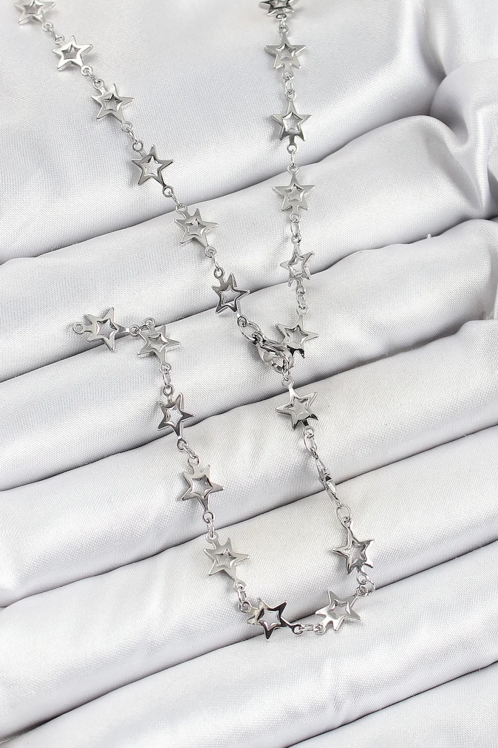 Pirinç Gümüş Renk Yıldızlı Kadın Y Kolye