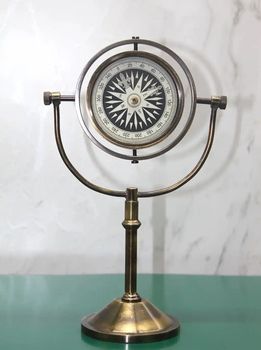 PİRİNÇ MASA ÜSTÜ PUSULA MODEL 4Ürün ÖzellikleriPirinç masa üstü pusula model 4, 23x15 cm boyutlarında şık ve estetik bir dekoratif üründür. Pirinç malzeme ile üretilmiş olan bu pusula, hem işlevsel hem de dekoratif bir objedir. Antik tarzda tasarlanmış olan pusula, masanıza zarif bir dokunuş katar ve hem ofis hem de ev dekorasyonuna uyum sağlar. Dayanıklı yapısı ve nostaljik tasarımı ile dikkat çeker.Paket İçeriği1 Adet Pirinç Masa Üstü Pusula Model 4